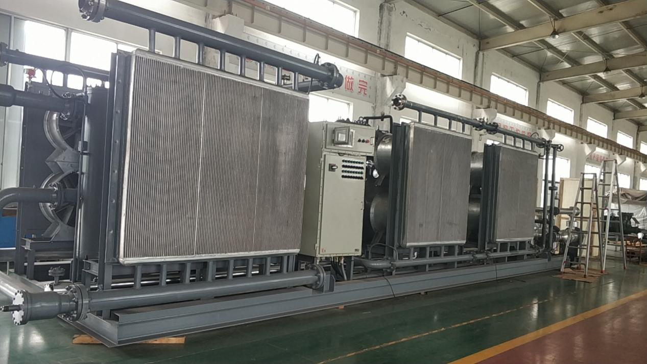 機(jī)組可選擇使用鋁制板翅式氣體冷卻器和油冷卻器,以滿足不同地區(qū)的需要,環(huán)境溫度比較低的地區(qū)建議選擇翅片式風(fēng)冷器,以防止換熱器截面溫差超過鋁制板翅式換熱器的溫差,出現(xiàn)換熱器泄露。