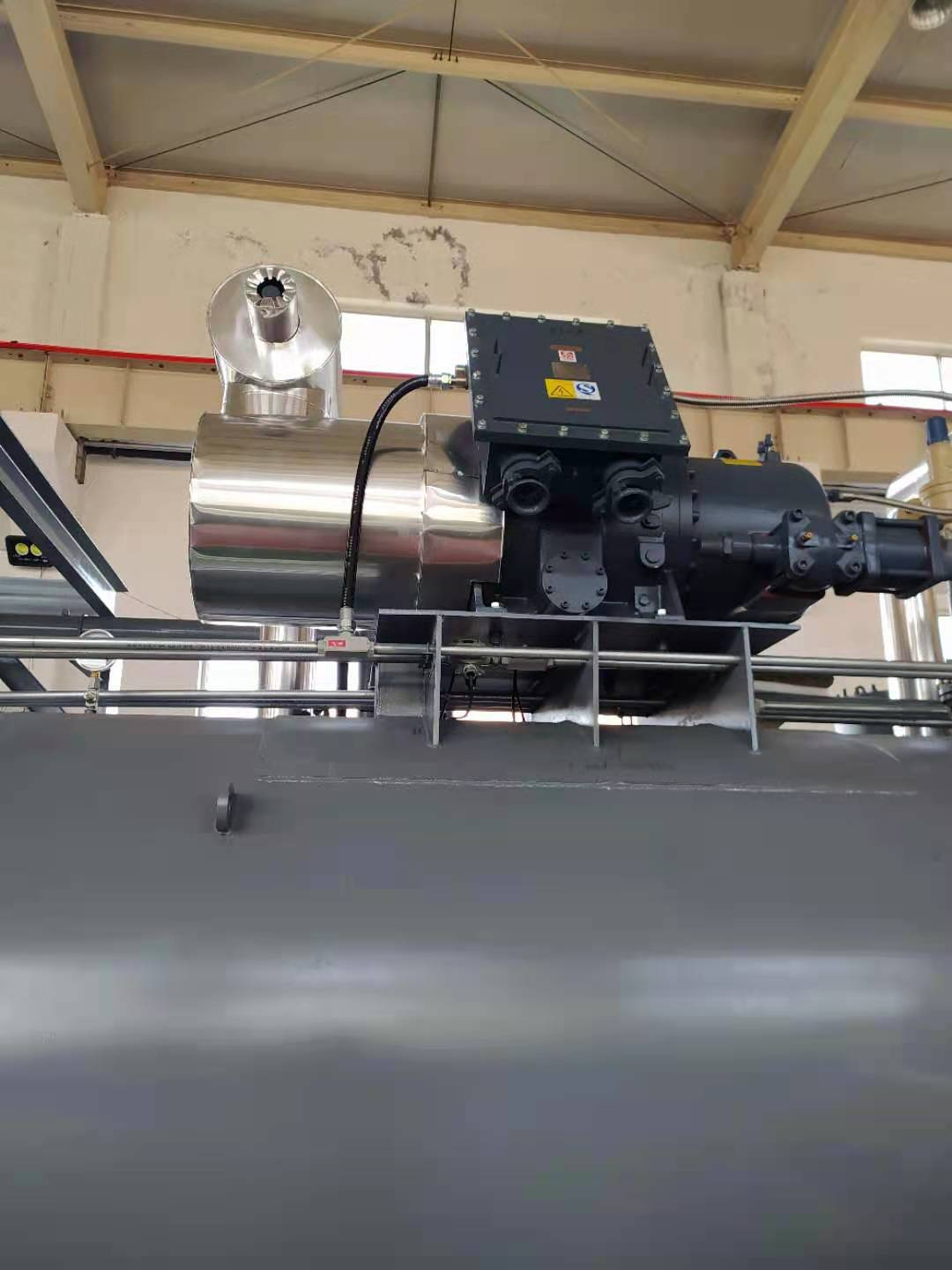 由于壓縮機(jī)為壓差潤(rùn)滑,無需開啟油泵,提高機(jī)組的可靠性,啟動(dòng)用油泵采用磁離合封閉式,無泄漏,也可以選用穩(wěn)壓裝置代替油泵。機(jī)組只有壓縮機(jī)在轉(zhuǎn)動(dòng),節(jié)電可靠。